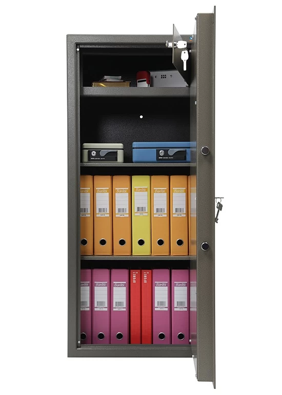 Популярный вариант бюджетного сейфа, успешно выполняющего задачу охраны документов и умеренного количества денег от непрошеного внимания случайных посетителей вашего офиса. Также он годится для установки в квартире. Он прекрасно подойдёт вам, если ваша цель – приобрести качественный недорогой сейф для помещения, куда сложно проникнуть посторонним или где есть охрана.