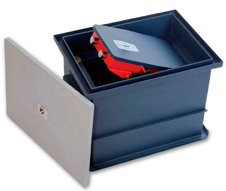 Встраиваемый сейф Technomax GF/4K – взломостойкий сейф итальянского производства, предназначенный для укрепления в заранее заготовленной нише в полу. Конструкция позволяет регулировать глубину сейфа от 210 до 320 мм.